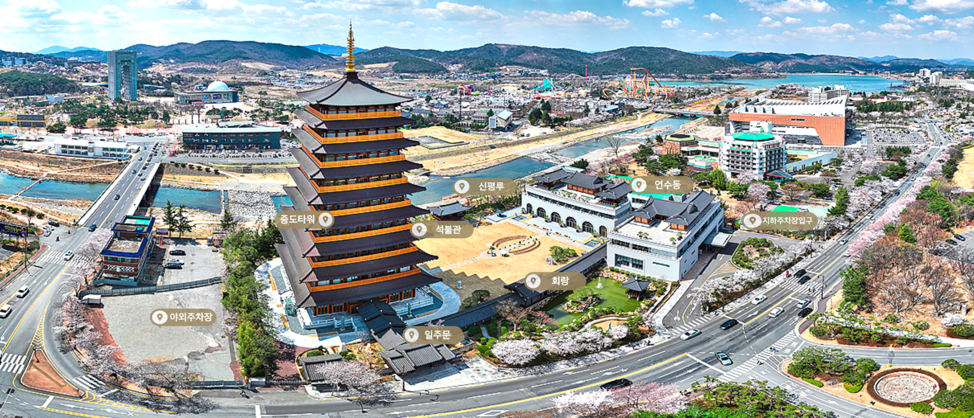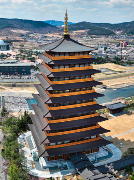 신라의 황룡사지 9층 목탑을 재현한 중도타워.